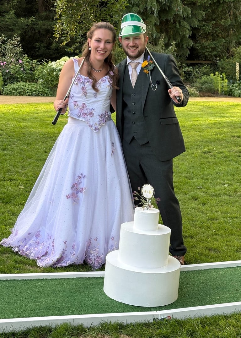 Hitched and Pitched is a family-run business based in Leeds, bringing interactive entertainment and a whole lot of fun to wedding days across the UK. Led by Jen and her team, they specialise in turning weddings into memorable experiences with their luxury 9-hole mini golf course and professional portable darts setup.
